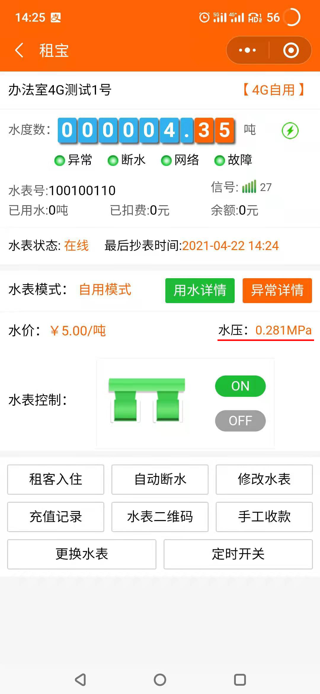 水压异常及时报警发现,解决了水管爆裂发现不及时产生危险的问题。