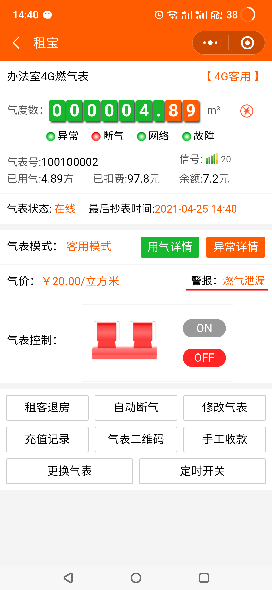 租宝4G燃气表新增燃气泄漏自动关阀报警功能