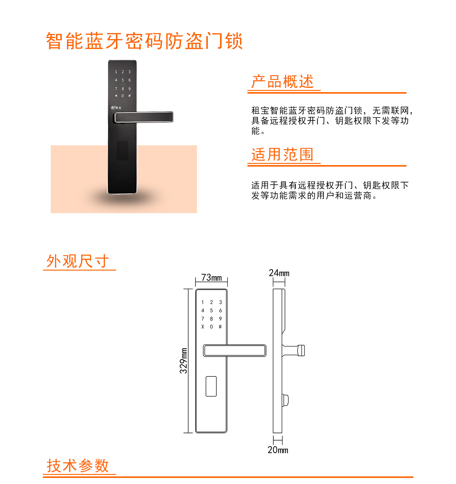 | 产品名称 | 租宝智能蓝牙密码防盗门锁 |